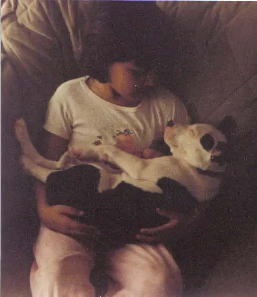 The is Dr. Morales with her first pet dog, an American Pit Bull Terrier named Lady. Lady is the reason Dr. Morales became a crazy pit bull lady (and possibly even a vet).